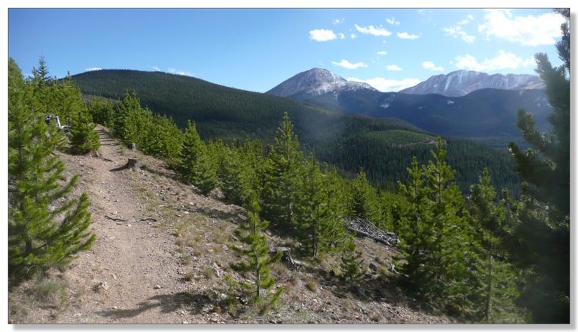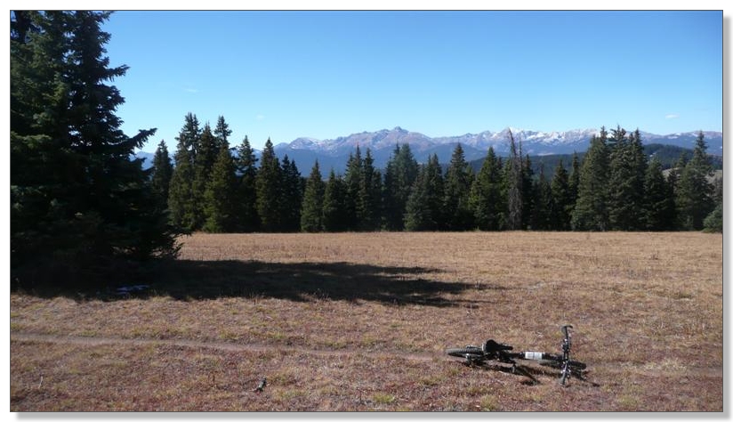 It's all downhill from here!!! Well, maybe not quite literally true, but close enough. The NFS pages for these trails show Bowman's as having 1,230 feet of net climbing, and 1,097 feet of net descending. From there, Two Elk trail drops 3,066 more feet over its 9 mile course to Minturn. That adds up to exactly 4,163 feet of downhill delight:
