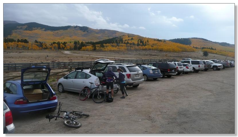You may recall that about a month ago, I started this series of posts about adventures on my new folding bike with a report on one of the high elevation Colorado classics, Kenosha to Georgia. That's a very popular ride and for good reason, especially in the fall, combining spectacular colors with spectacular trail. The standard out-and-back covers about 24 miles and includes around 3500 feet of climbing.