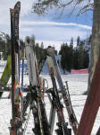She had been so serious about not skiing again that she had jettisoned both her pairs of skis during the big internet garage sale before moving into the RV. So while I purchased our lift tickets from one of the nifty ATM-like ticket machines, she rented a pair of those little newfangled shaped skis. My 192s (which are not very long by traditional standards) looked almost comical by comparison.