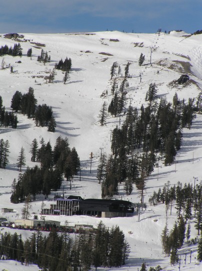 There's an Olympic ice pavillion mid-mountain, part of High Camp, which offers a nice deck with spectacular views of Lake Tahoe and the surrounding mountains.