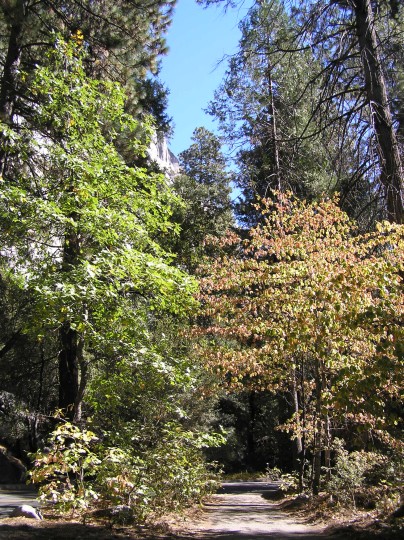 Splendid display of Fall colors on the approach to the Ahwanee Hotel.