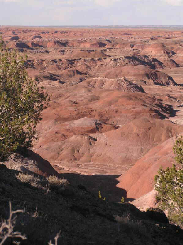 Painted Desert is just north of Petrified Forest, and it's an epic, sweeping vista type of place. It's just a mile or so off the interstate--suddenly there's a gigantic opening in the ground. You can go backpacking down in the bottom, but there's not much shade except in the shadows of rocks. We stayed up top, but even from there we could tell it wasn't really painted.