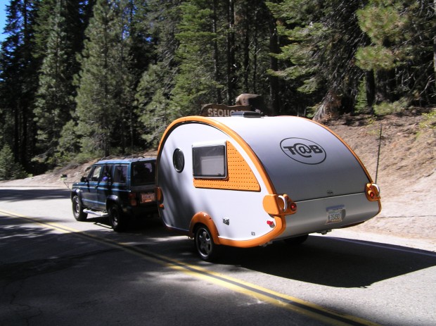 This cute "tab" trailer zipped past us into the park, a modern throwback to classic teardrop trailers